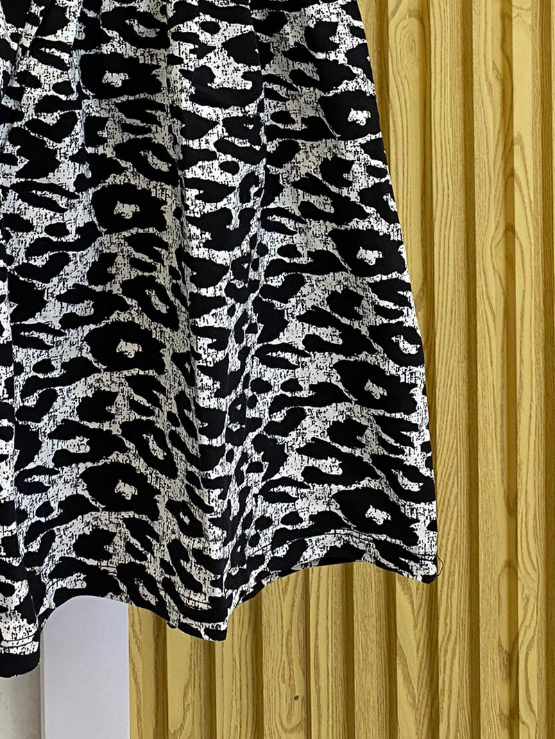 This fashionable monochrome dress is designed with a chic animal print pattern, combining black and white tones for a modern and bold look. Made from a soft and comfortable fabric, it features a short-sleeve design with a slightly flared skirt, providing ease of movement and a flattering silhouette. The back includes a subtle button closure for easy wear. Whether for a family outing or a casual gathering, this dress adds a touch of sophistication to any young girl’s wardrobe.