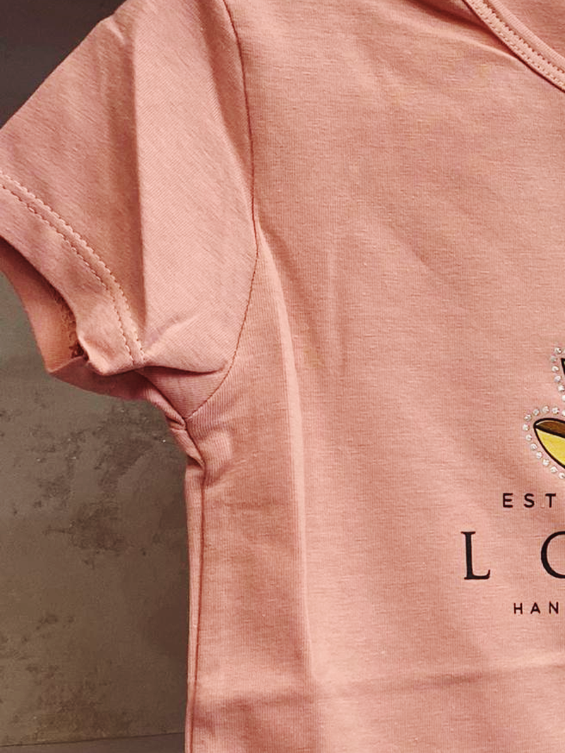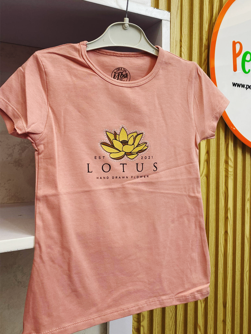 Soft and stylish pink t-shirt with a lotus flower design, perfect for kids who love comfort and fashion. We are the best kids wear store in Uganda. Find us at Pioneer Mall