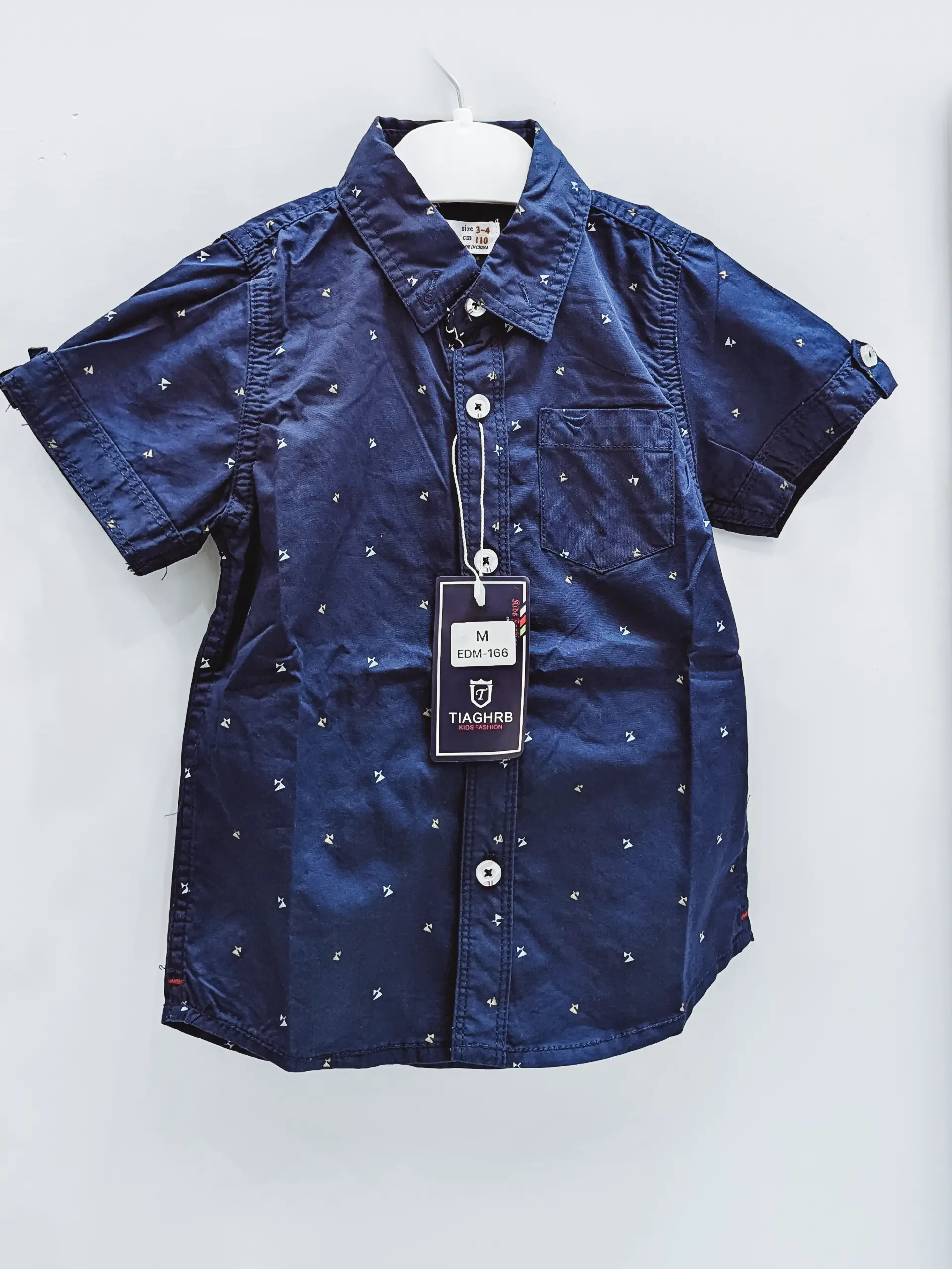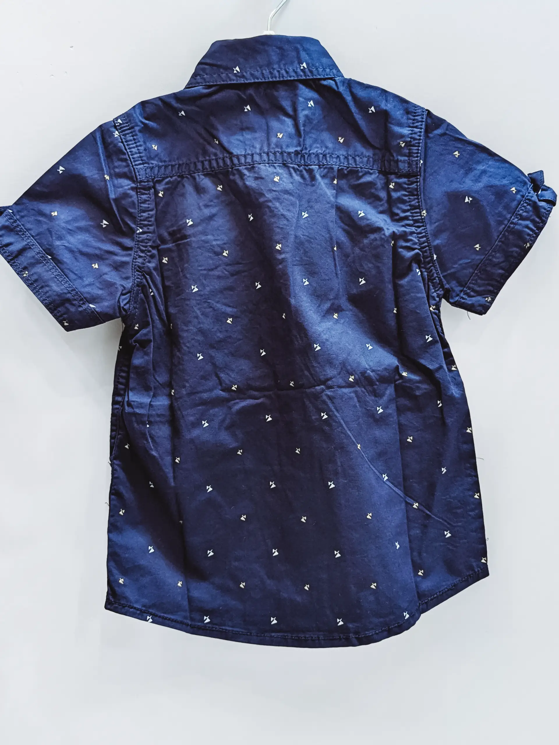 A navy blue slim-fit short-sleeve shirt with a subtle printed pattern, perfect for casual or semi-formal wear. Ideal for casual outings, weekend gatherings, or smart-casual office looks, this shirt pairs perfectly with chinos, jeans, or shorts for a polished yet relaxed appearance.
